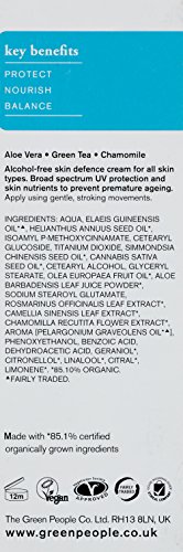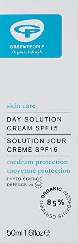 -. Binding : Health and Beauty -. Brand : Green People -. EAN : 5053676640105 -. Feature : Moisturises and rebalances your skin / Rich in essential fatty acids and antioxidants / Protects against cell damage / Natural sunscreen protection - SPF15 / Gently scented with Rose Geranium -. IsAdultProduct : 0 -. Label : Green People -. Manufacturer : Green People -. Model : GP-B022 -. MPN : GP-B022 -. PackageQuantity : 1 -. PartNumber : GP-B022 -. ProductGroup : Health and Beauty -. ProductTypeName : HEALTH_PERSONAL_CARE -. Publisher : Green People -. Studio : Green People -. Title : Day Solution SPF15 (Day Cream)