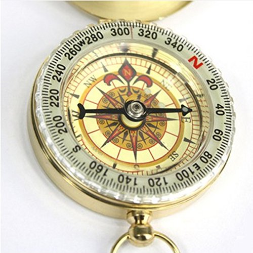 Features: Product Color: Gold Product Size: 50 * 11 mm Diameter of dial: 50mm Compressive and waterproof Material: copper and glass Product weight: 50g Luminous and shakeproof Features: Basic positioning, map positioning, bias angle, azimuth