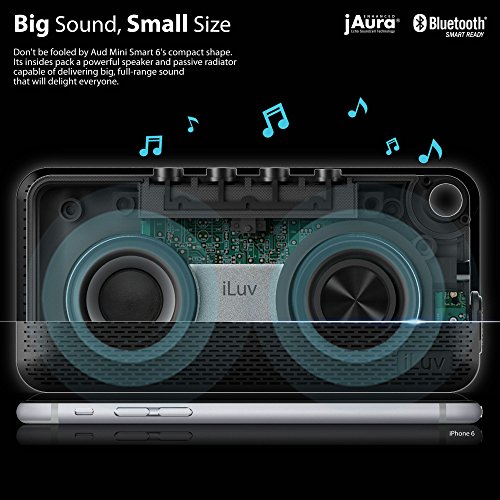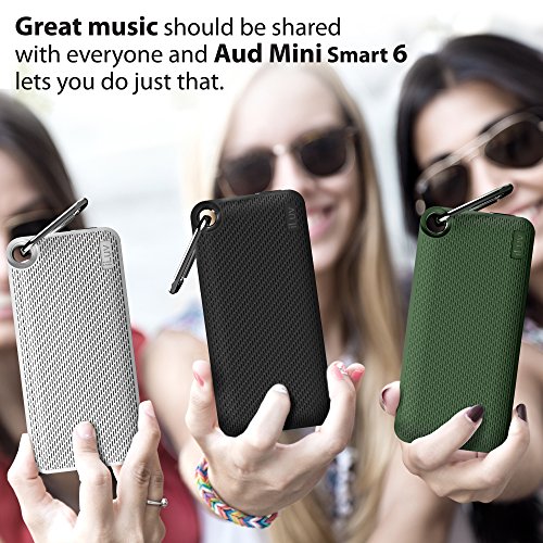 ADORABLY MINI & PORTABLE: Anyone want to carry a Jukebox? Not us! With this cute portable Aud Mini Smart 6 speaker it's so easy to carry around. Trust our reviews! Such a cute device gives dynamic sounds. The size is the same as the iPhone 6, but of course it is SUPER lightweight and something many college students or music lovers would love! This speaker even comes with a chain and you can take it on the go FAST! Just attach it to your backpack and it will never come off! Have fun with music.
