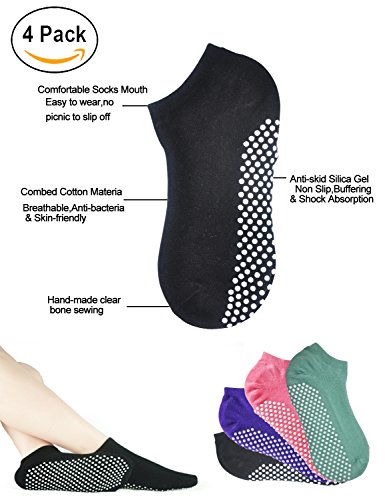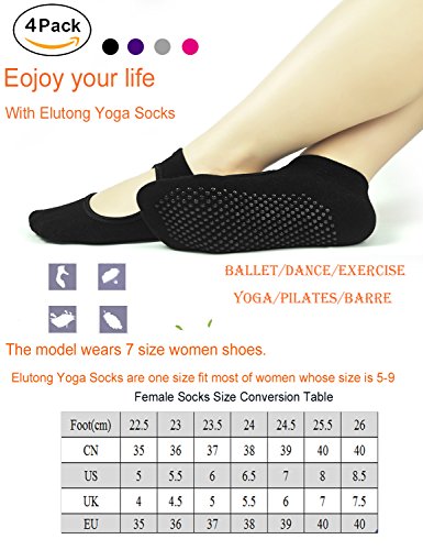 -. Feature : NON-SLIP GRAIN DESIGN-Featured non slip dots on the bottom of the socks. They offer better grip for improved stability & balance so that you can stay safe, avoid injuries and have better body movements control, even protect your feet without a mat / High Elasticity Socks: Women's grip socks fits women shoe sizes 5-8.5.Package includes 4 pair of sticky socks. / STAY CLEAN AND COVERED: Elutong fully covered design socks protect your feet from dirt and blisters, keeping the entire surface area of your feet free from germ exposure. / ALL PURPOSES IN ONE: Ideal for not only yoga, but also pilates, barre, bikram,ballet dance,gym and other sports.Perfect for home, travel, studio and hospital use as well.Great for women/girls/senior/pregnant women / GUARANTEE FOR 30 DAYS: If you are not completely satisfied with your purchase, we will refund your order with no exception.