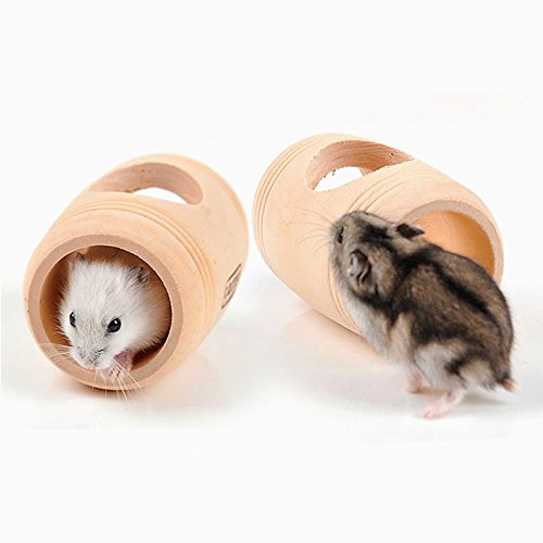 (HUELE)/Pet Supplies/Toys/DIRECT FROM USA/HUELE 2PCS Pet Interactive Wood Small Hamster Barrel Toys Funny Hamster House Toys