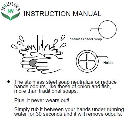 -. Feature : Innovative NewlineNY high quality Stainless Steel Soap for removing pungent odors / Remove any unwanted smells or odors from your hands after handling onion, garlic, scallion, fish & etc / ECO-friendly; no soap scum; no hazardous ingredients added to water; save money with better cleaning effect With no chemicals, harmless to your skin / Just simply use this like a bar of soap and run water over it while rubbing it on your hands / Soap lasts for years; Included stainless steel soap stand for secure storage by kitchen sink, and easy for cleaning