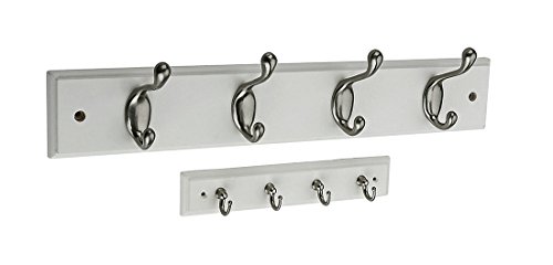 18" White Board Coat & Key Rack w/ 4 Satin Hooks