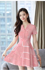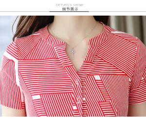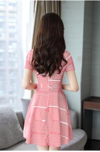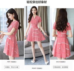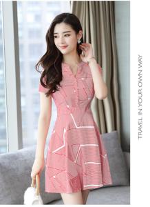 レトロ柄ワンピース ハイウエスト ノーカラーシャツワンピース フレアスカート 半袖 膝上 レトロ プチプラ シャツワンピ