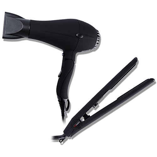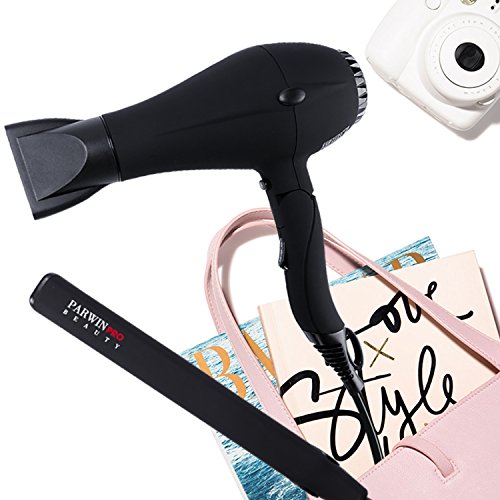 PARWIN PRO Blow Dryer and Flat Iron Set– 1875W Foldable Hair Dryer and 1 Inch Flat Iron with Travel Bag, Black