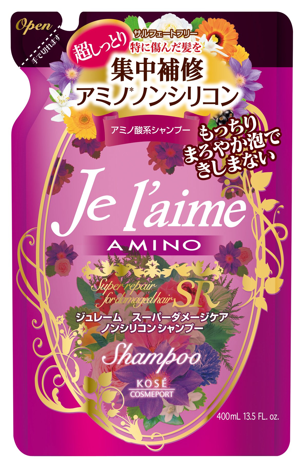 Amino-based non-silicon shampoo to repair damaged hair.