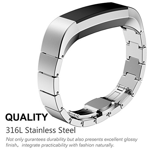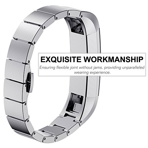 Fitbit Alta (HR) Bands, H-Raytech Premium Stainless Steel Replacement Watch Band with Classic Butterfly Clasp for Fitbit Alta HR and Alta, All Removable Links Fits to Most Wrist Size