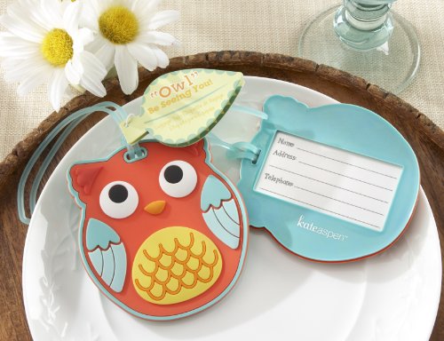 Studio : Kate Aspen Publisher : Kate Aspen Product Description What better luggage buddy to take on a flight to good times and great memories! Say "thank you" to your guests with these cutely crafted, colorful owl at year-round celebrations, like your forest friends-themed baby shower or your fun farm wedding in the fall. Features and facts: Sturdy, rubber luggage tag with friendly faced owl design, plastic attachment loop and green, leaf-shaped card that says "Owl" Be Seeing You on the outside and "What a Hoot!" on the inside Protected identification card appears on the teal-blue back of the owl Owl measures 3 3/4" h x 3 3/8" w 0