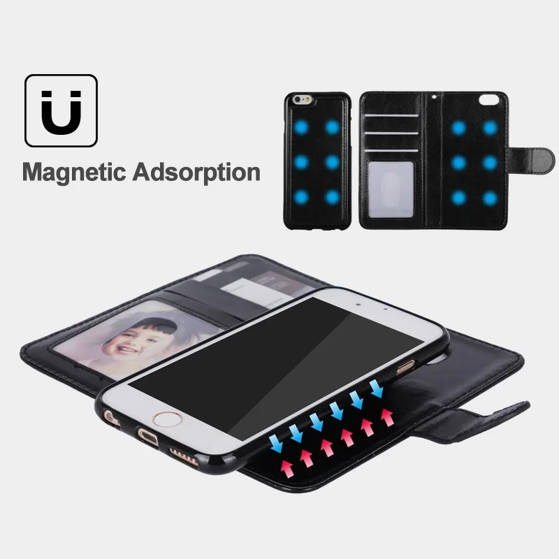 feature 1:magnetic 2 in 1 combo detachable cover stand leather case