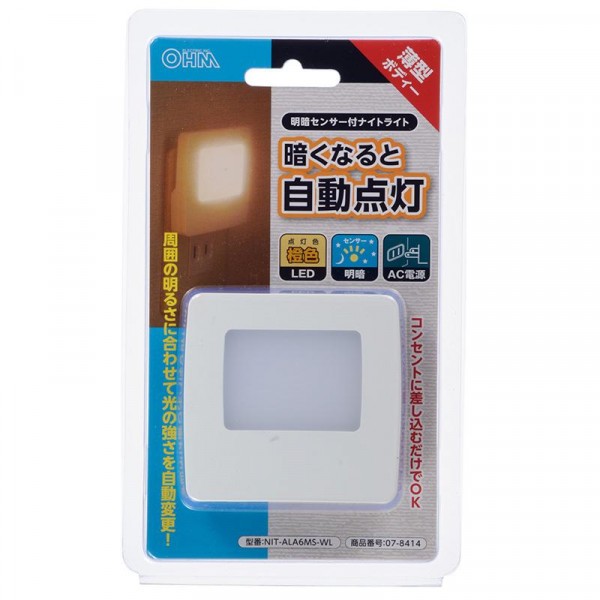 | 周囲の暗さに応じて光の強さを自動調整する、明暗センサー付きです。ご自宅での補助灯やフットライトなどにオススメです。 |