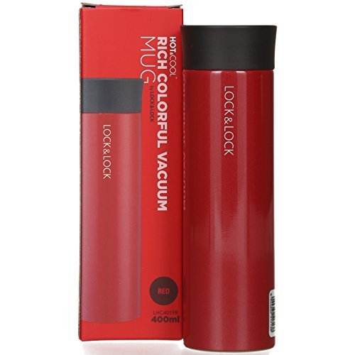 LOCK & LOCK LHC4019R Colorful Stainless Steel Vacuum Insulated Thermal Travel Mug, 13.5 oz, Red