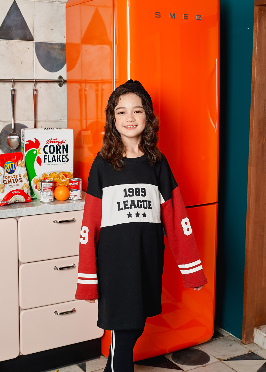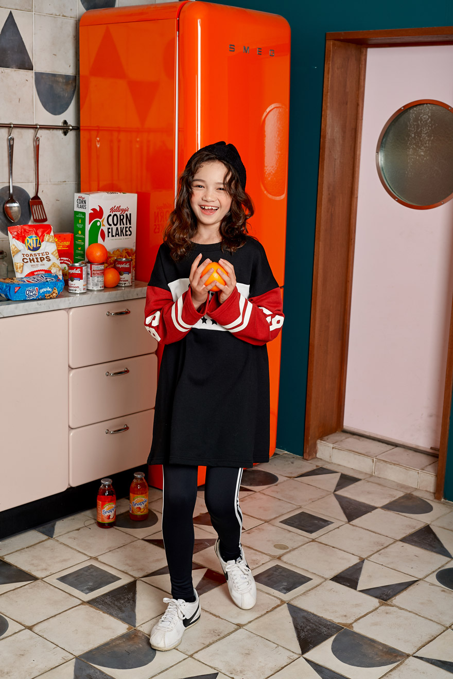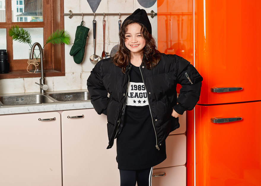 9, 11, 13, 15, 17호로 준비되어 있으며 하단에 측정된 사이즈 표를 참고해 주세요. 엘리는 140cm에 31kg으로 다소 마른 체격이며, 딱 맞게 블랙 11호를 착용하였습니다. 깔끔한 핏으로 잘 맞네요 :)
