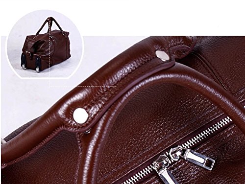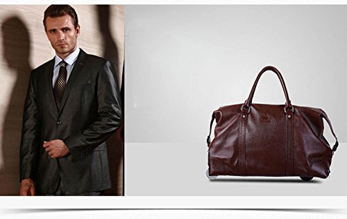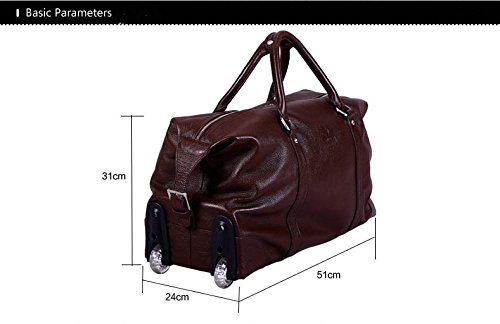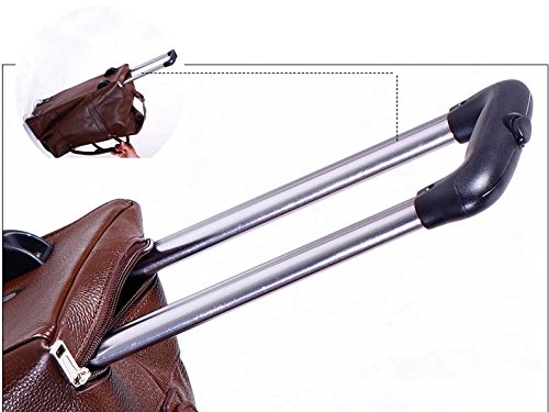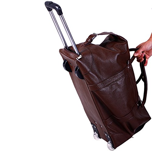 -. Feature : Dimensions:20''l x12.1''w x9.4''h; free gift PU leather pencil case, get promotion code below / Material: Joining hook-and-loop top handles;High quality hardware accessories;Genuine leather wheeled suitcase for 2-5 nights business trip; / Spacious Compartment to Carry Clothes, iPad, Magazines, Books, Travel Items, etc. / Plastic feet for protection; Smooth rolling wheels with locking upright handle for easy mobility / Premium Leather Duffel for Air Travel, Business Trips, Weekend Getaways etc