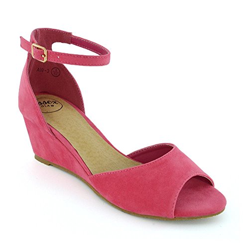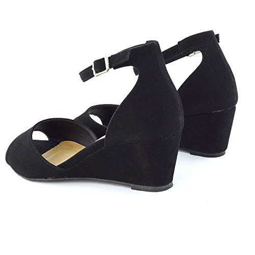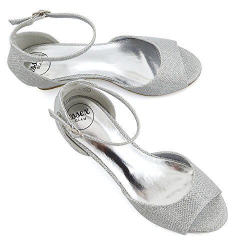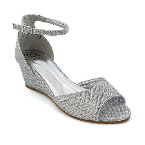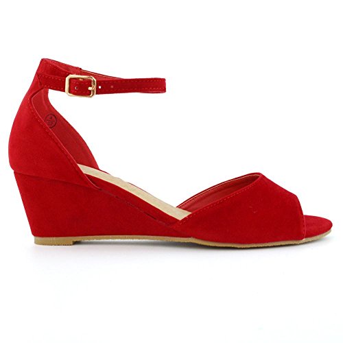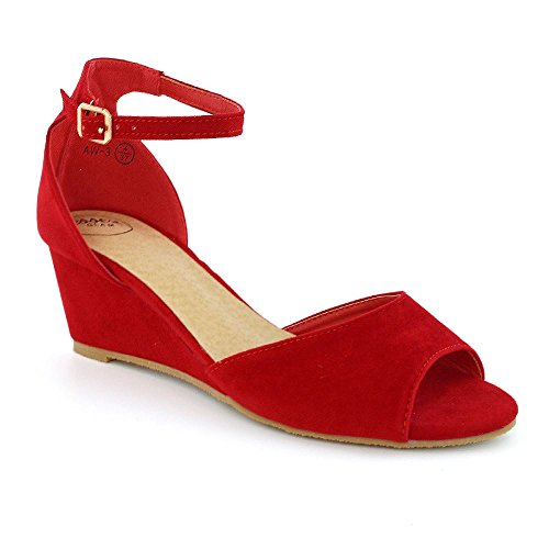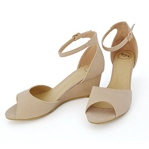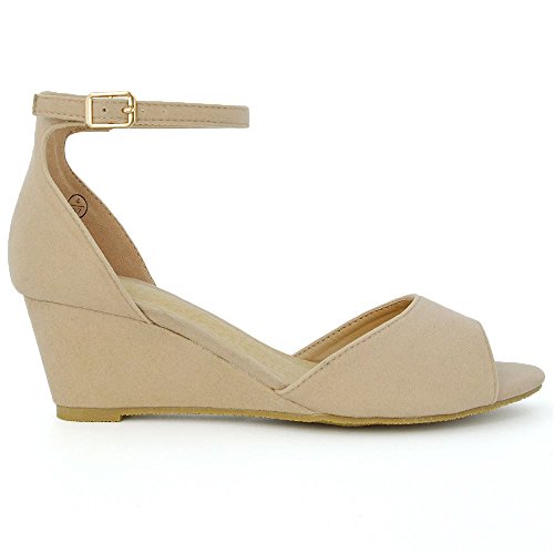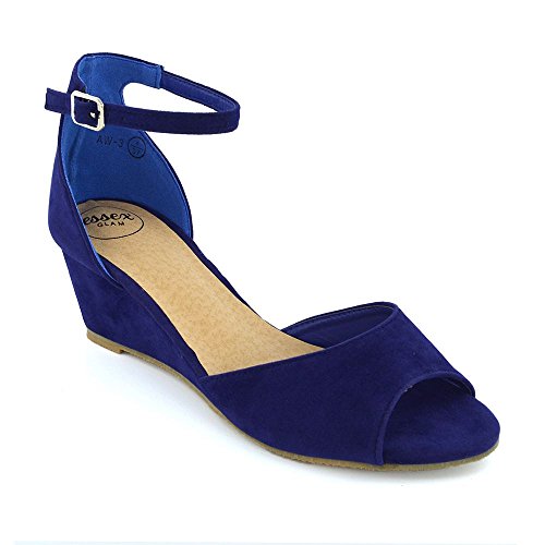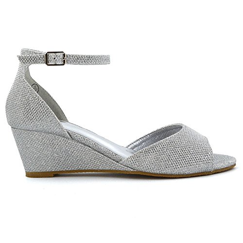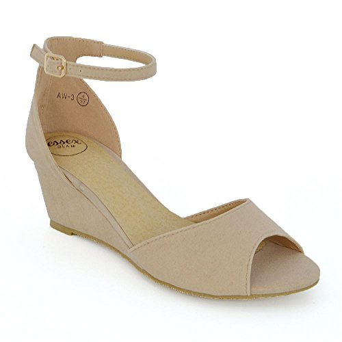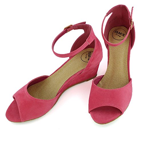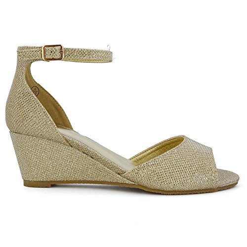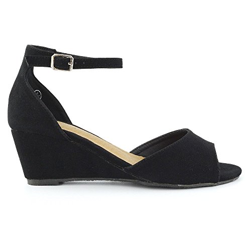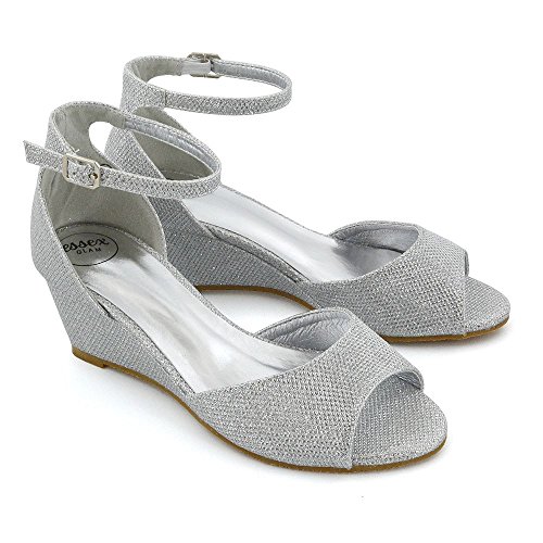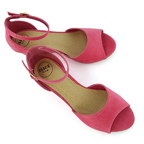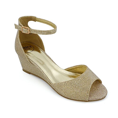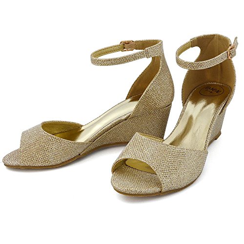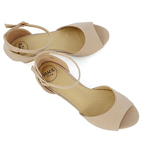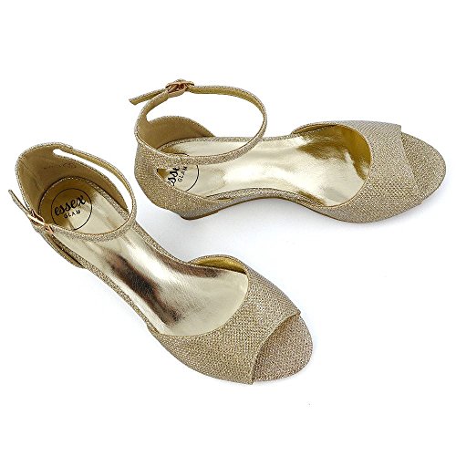 | Essex Glam Women’s Low Wedge Heel Ankle Strap Peep Toe Synthetic Evening Sandals |