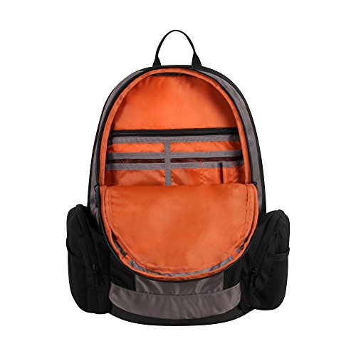-. Feature : 420d textured dobby and 900d polyester body fabric with a 1680d durable ballistic bottom panel / Features two main compartments, extra media pouch in main compartment, vertical zippered stash pocket on front, full organizer in front zippered compartment, dual side zippered compartments with mesh bottle pockets, and padded s-curve performance straps / Air own optimized back panel with center air chimney / Fully padded laptop compartment that fits up to 17 inch mac book pro or 15 inch laptop