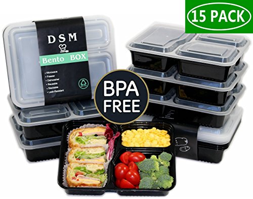 [15 Pack]3 Compartment Meal Prep Containers with Lids(36 ounce), Durable Reusable Food Storage Container, Stackable, Reusable, Freezer ,Microwaveable & Dishwasher Safe,| BPA free |