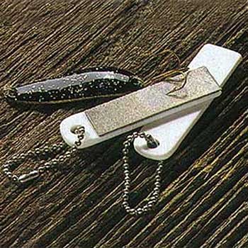 A sharpener of both widespreads with roughly ground diamond file attached to a ceramic for finishing.