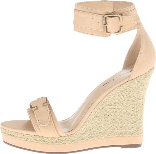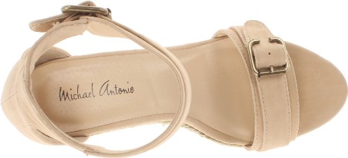 Studio : 6pm Michael Antonio Footwear Publisher : 6pm Michael Antonio Footwear Binding : Shoes Product Description Adjustable buckle closure at ankle cuff. Open-toe silhouette. Single strap vamp with decorative buckle detail. Synthetic lining and footbed. Raffia wrapped platform and wedge heel. Synthetic sole. Imported. 0