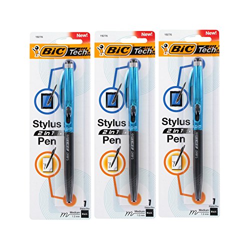 -. Title : BIC Tech 2 in 1 Retractable Ball Pen and Stylus, Medium Point, 1.0mm, Black Ink - Pack of 3