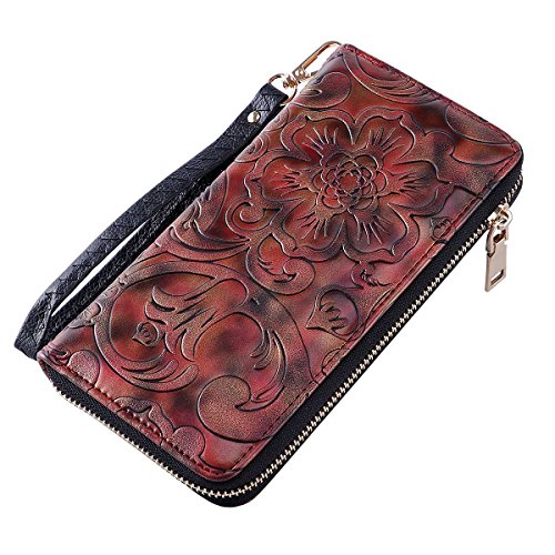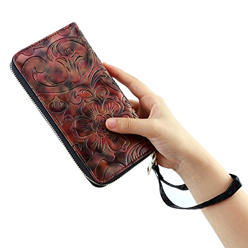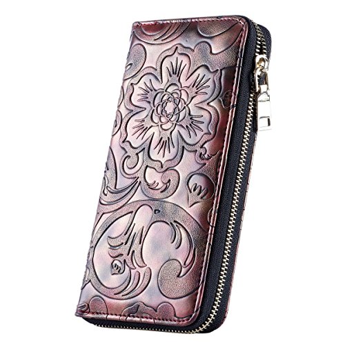 RUNWINDY Womens Wristlets Wallet Floral Print Zip around Long Clutch Purse Handbags