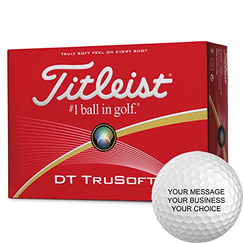 -. Binding : Misc. -. Brand : Titleist Custom -. Color : white -. EAN : 0681276116161 -. Feature : Your own custom personalized text P.R.Inted on these balls. / Up To 3 Lines Of Text. 5 ImP.R.Int Colors Available. Black, Red, Green, Blue or Pink (all text must be one color) / Fast turnaround - 5-7 Working Day Production Time. Brand new latest model balls. / Text is all in BLOCK CAPITALS / Trusted Seller. Golf Tees Etc have years of experience selling personalized golf products. -. IsAutographed : 0 -. IsMemorabilia : 0 -. Label : Titleist Custom -. Manufacturer : Titleist Custom -. MPN : DTTRUSOFT12 -. PartNumber : DTTRUSOFT12 -. ProductGroup : Sports -. ProductTypeName : SPORTING_GOODS -. Publisher : Titleist Custom -. Studio : Titleist Custom -. Title : Titleist DT Tru Soft Personalized Golf Balls - Add Your Own Text (12 Dozen) -. UPC : 681276116161