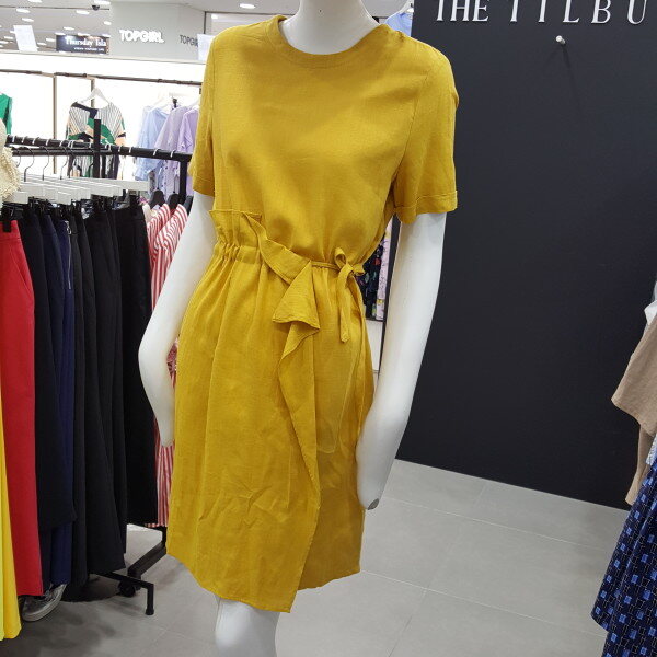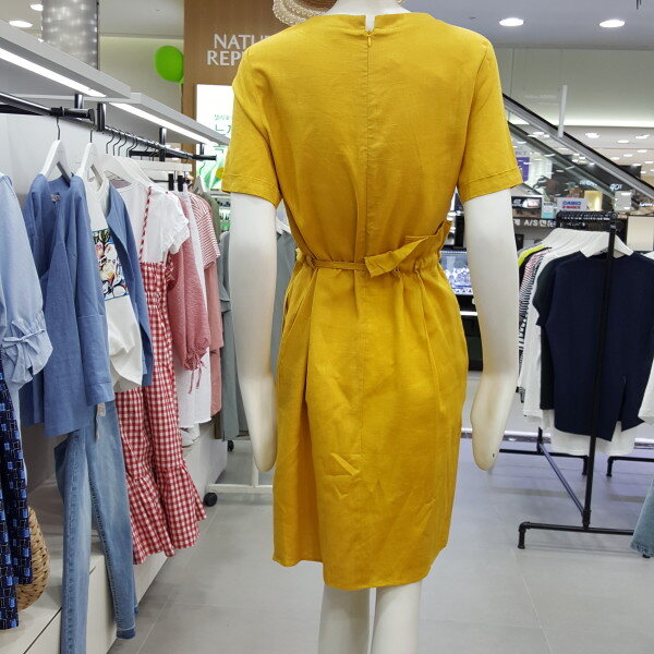 린넨 소재로 시원한을 드리는 원피스입니다 하리라인에 귀엽게 프릴과 끈으로 허리조절하능하고 주머니가 있어 편안합니다