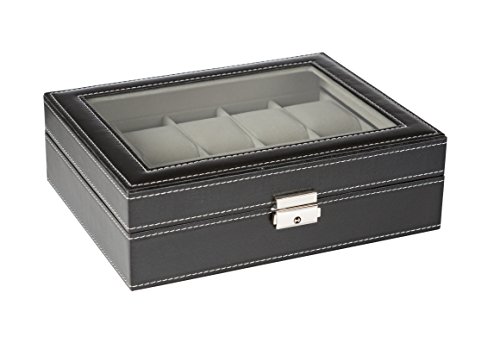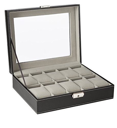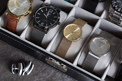 - ✅ SPACIOUS: 12 Spacious Compartments: Each watch cushion holds a small or large watch neatly in place . There is plenty of space between the lid and cushions to accommodate watches of all size.