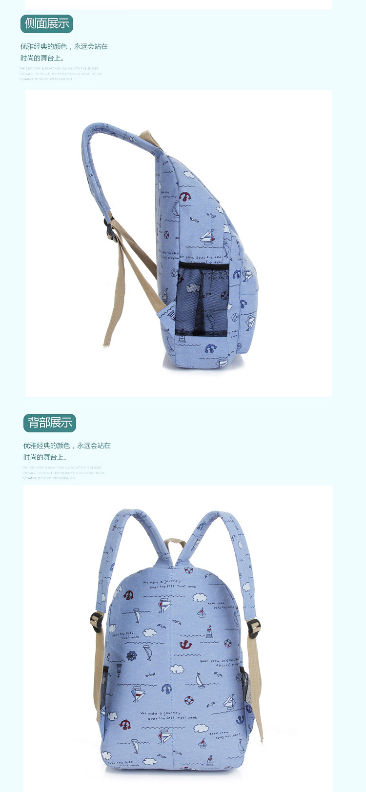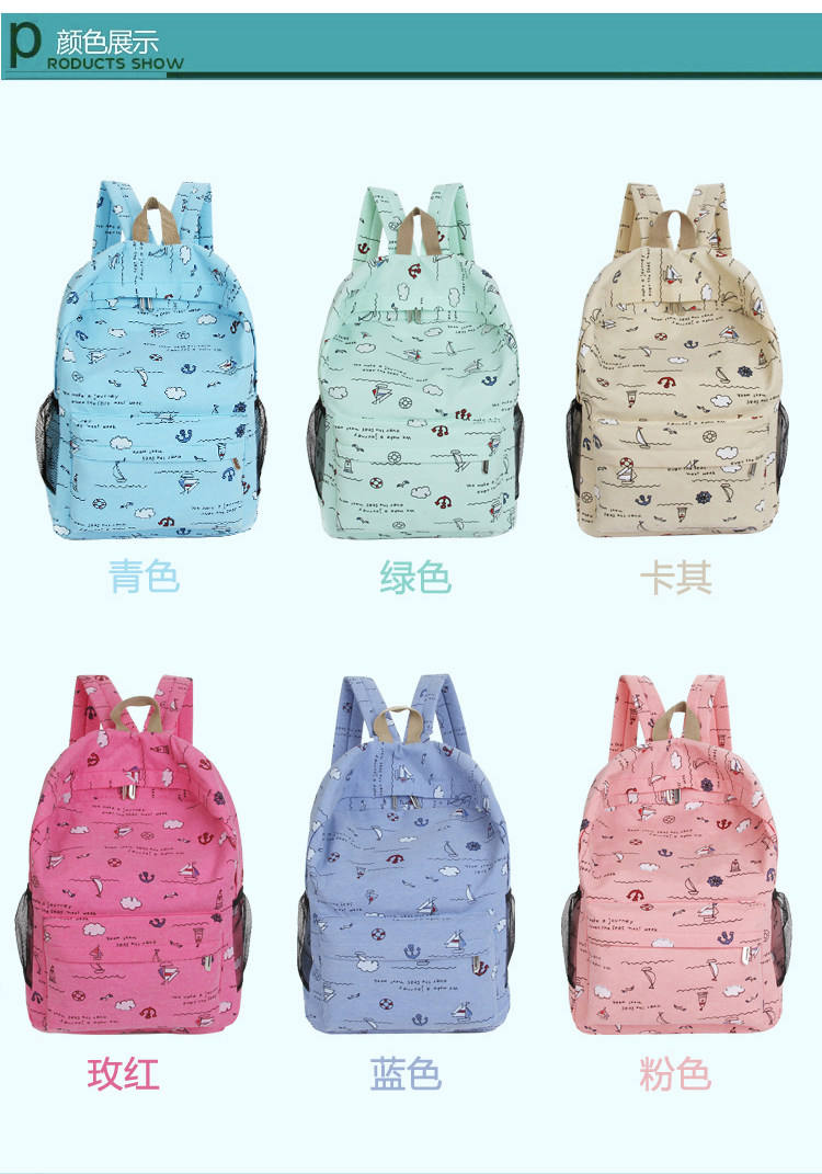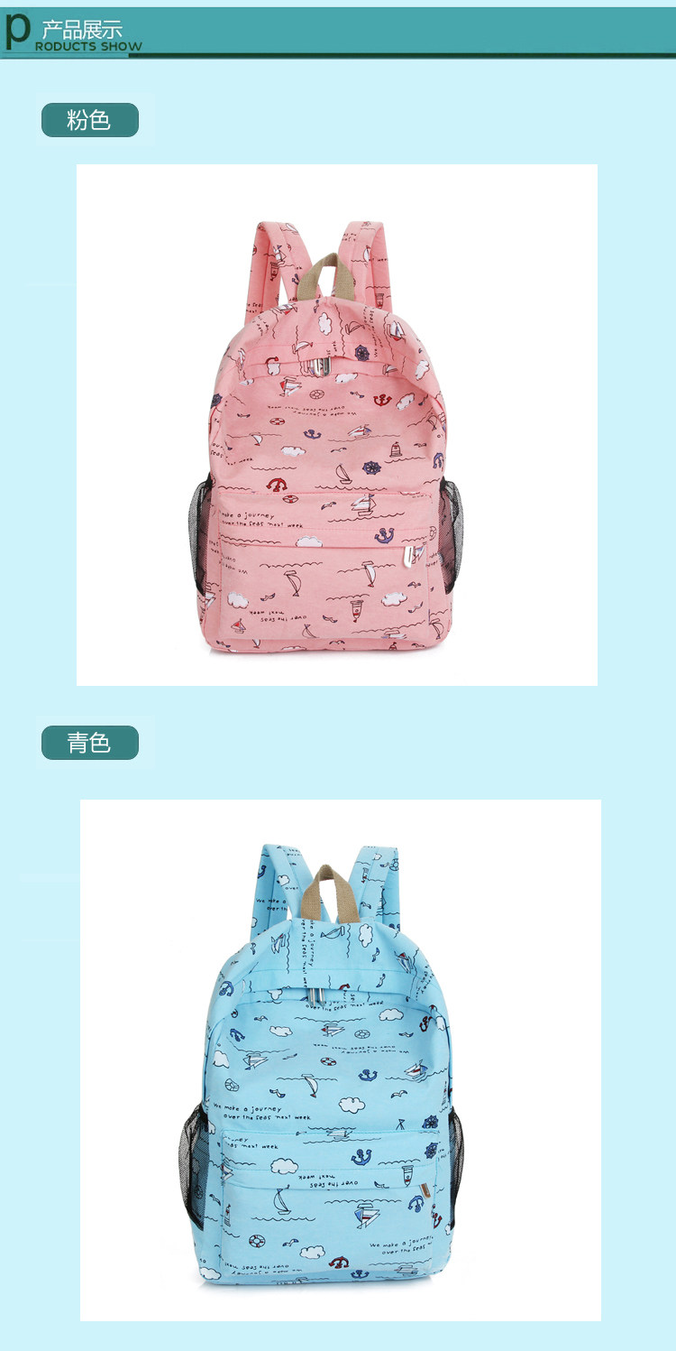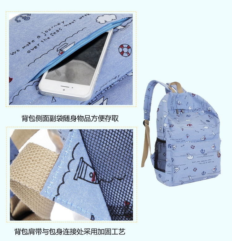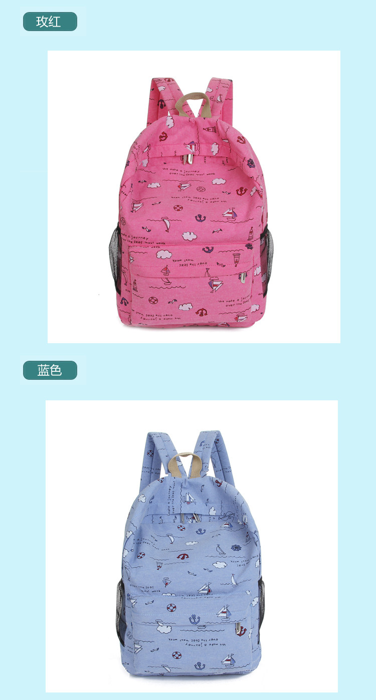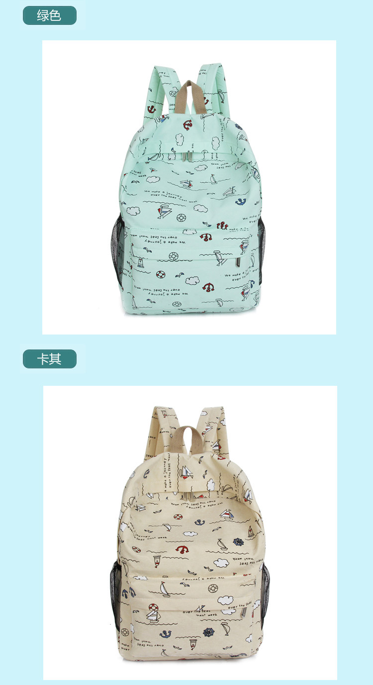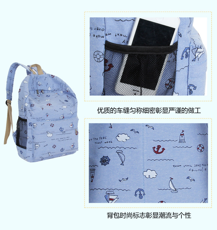 韩版背包原宿风印花情侣背包休闲帆船学生书包潮流双肩背女