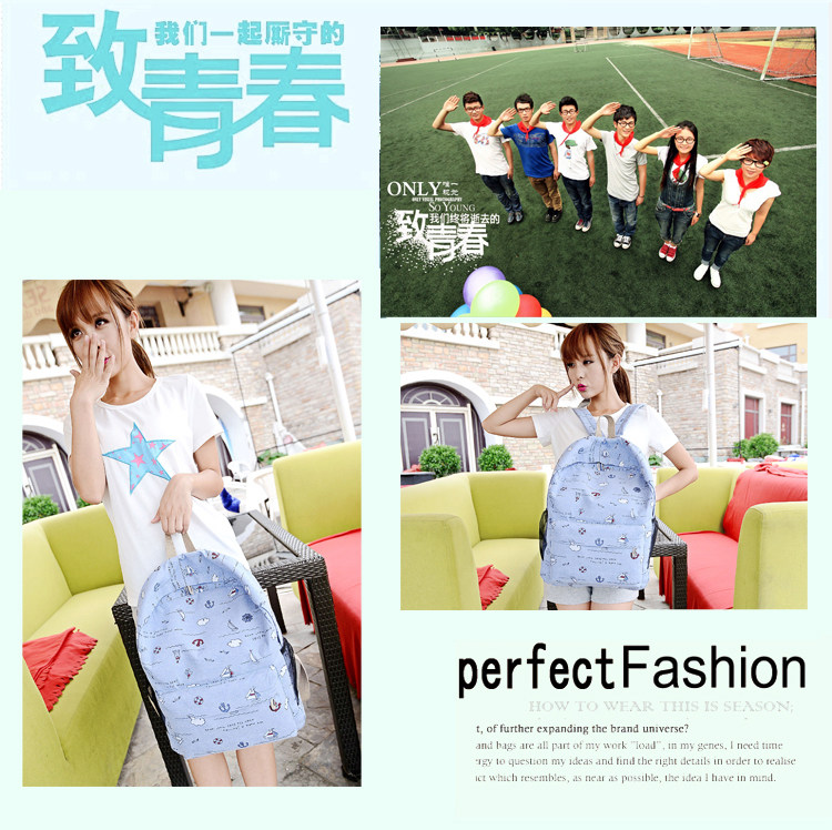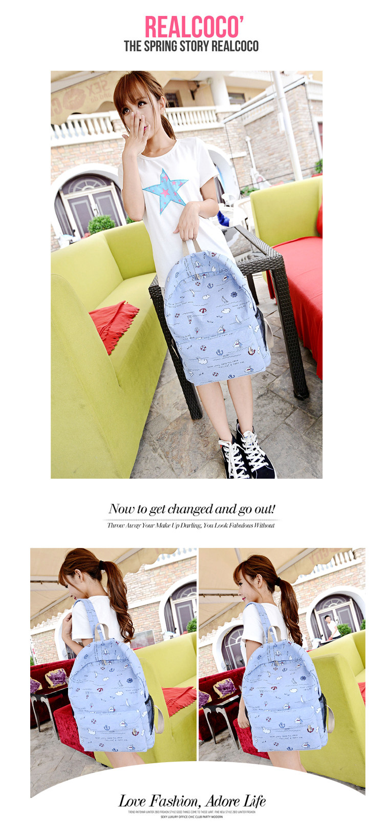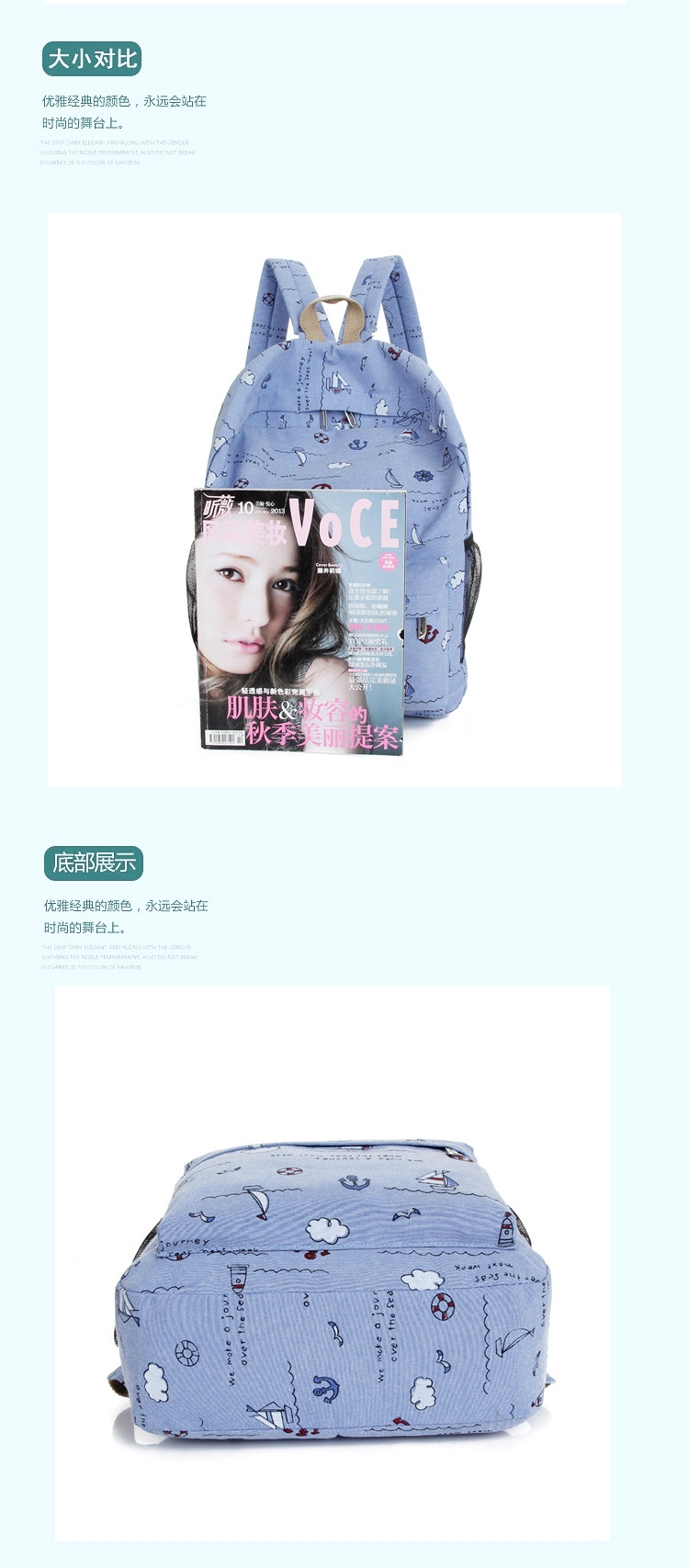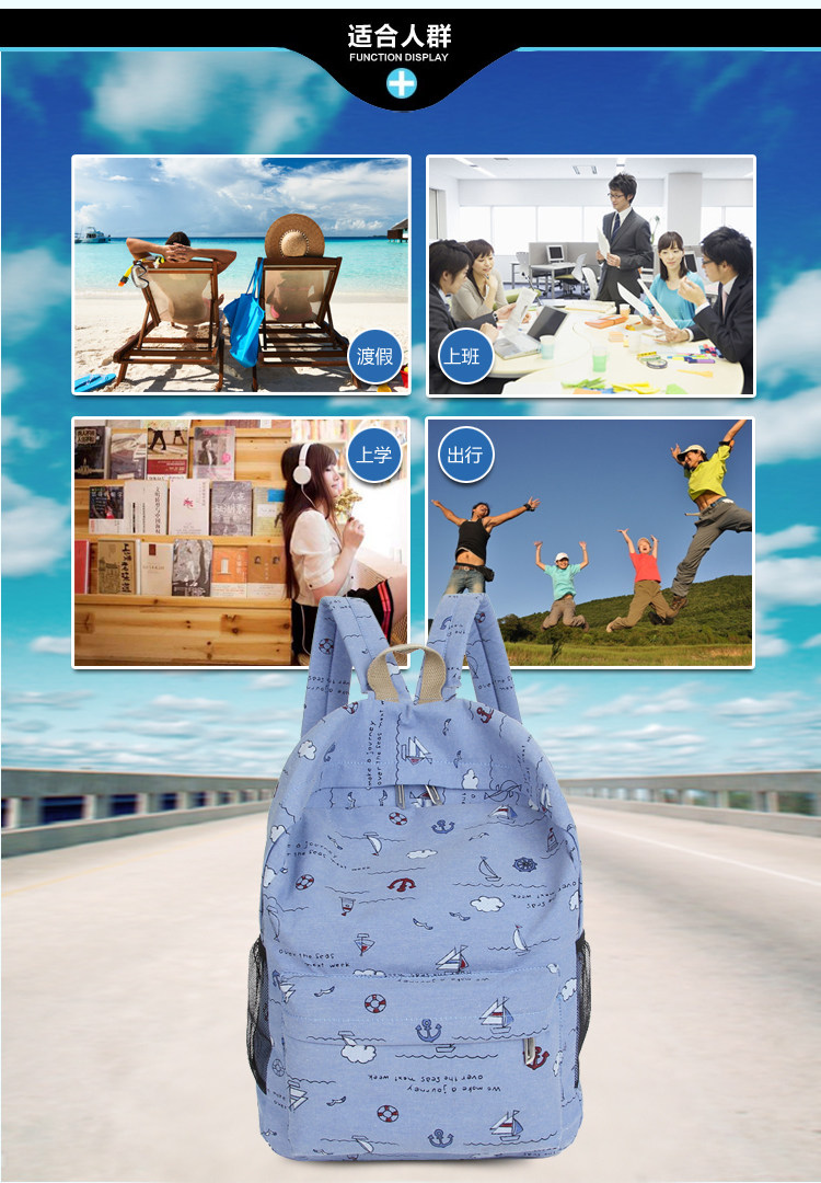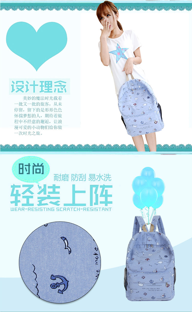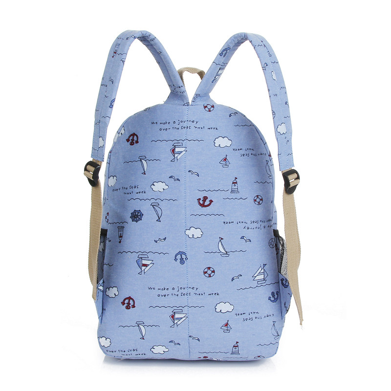 韩版背包原宿风印花情侣背包休闲帆船学生书包潮流双肩背女