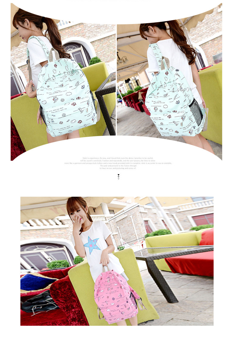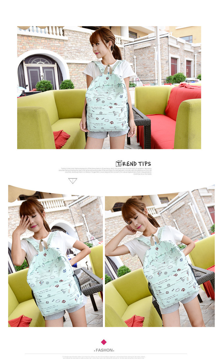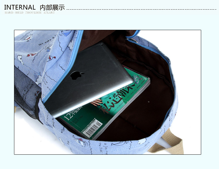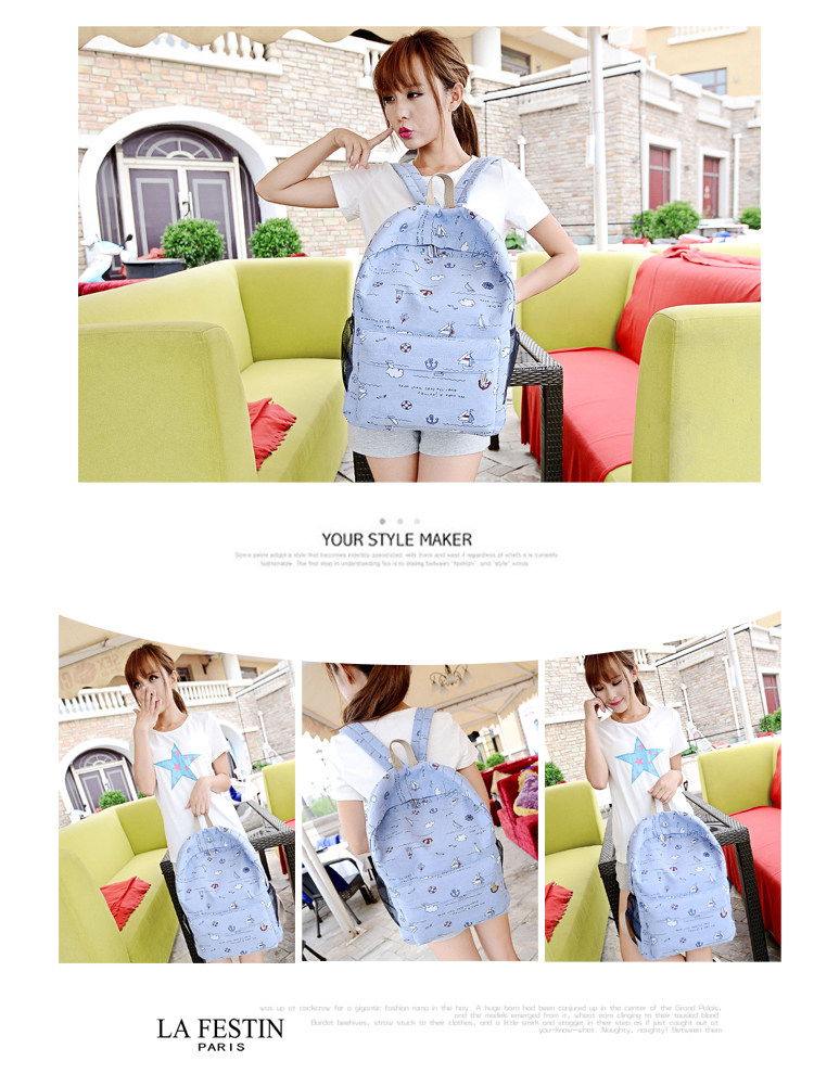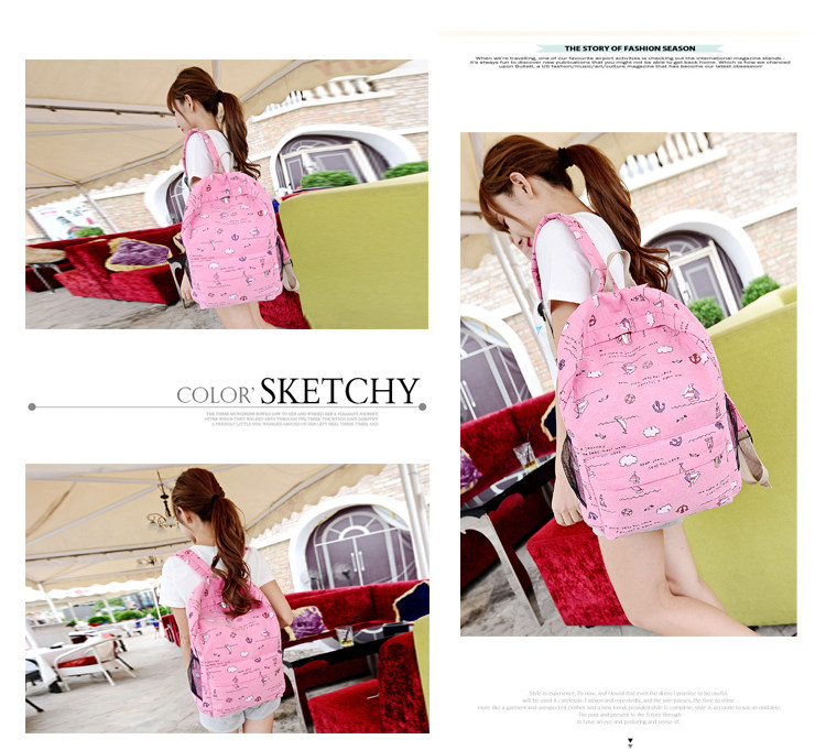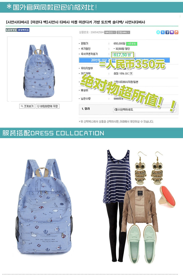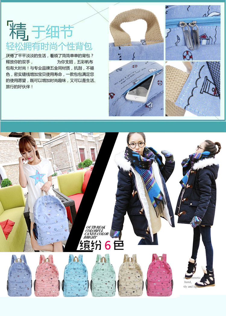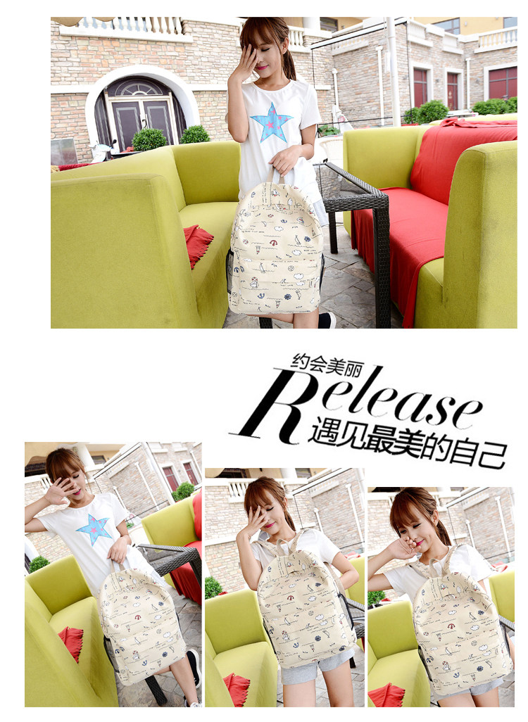 韩版背包原宿风印花情侣背包休闲帆船学生书包潮流双肩背女