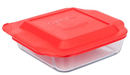 Pyrex 8-inch Square Glass Baking Dish with Red Lid