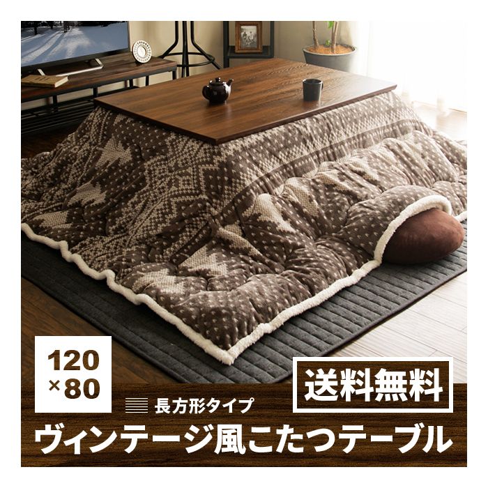 Rakuten 난로 테이블 난로 테이블 직사각형 120×80cm 멋쟁이 플랫 히터 호두 앤틱 빈티지 빈티지 북유럽 가구조 모던 다이닝 난로 리빙 난로 난로 이불 난로 이불 난로 괘이불