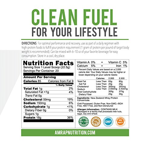 HIGHEST QUALITY NEW ZEALAND WHEY: Sourced exclusively from free-range, grass-fed New Zealand cows, AMRAP Whey Protein uses advanced ultrafiltration processing to provide a clean, highly concentrated whey powder with more pure protein and fewer carbs and fats.
