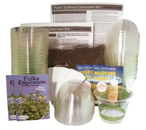 -. Feature : Kit includes 2 packs of mustard seed, 2 packs of polka dot plant seed, 24 planters with dome lids and plant stakes, 16 oz. of water-retention polymers, 1 lb. of germination mixture, teacher instructions and student handouts / Made in the USA