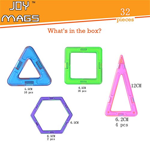 -. Title : Joy Mags Magnetic Blocks Clear Building Tiles Construction Stacking Toys Set (32 Pieces)