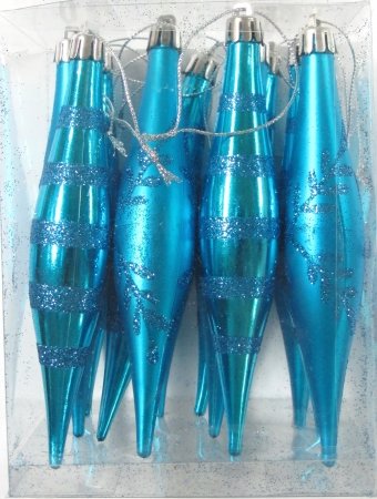 Queens of Christmas WL-FIN-12PK-SFLN-AQ 12 Pack Decorative Finial Ornament with Snowflake and Line Glitter Design, Aqua