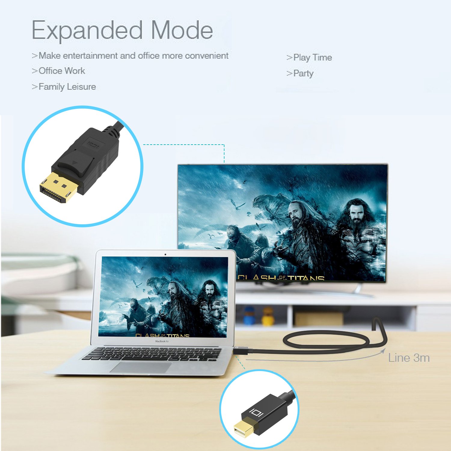 ICZI · High Speed MiniDisplayPort - Corrosion resistant connector with gold plating of DisplayPort conversion cable is used to reduce distortion at the connection point and transfer optimum signal.