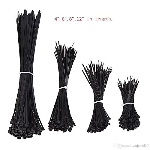 Gfortune 400pcs Black Nylon Self-Lock Heavy Duty Standard Cable Zip Ties 4'', 6'', 8'' 10'' Straps Wire Tie Kit Fasten Self Locking Multi-purpose for home and Industry