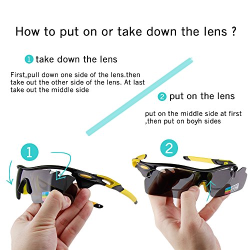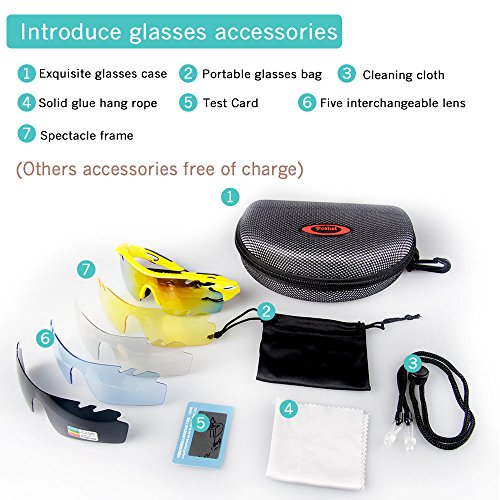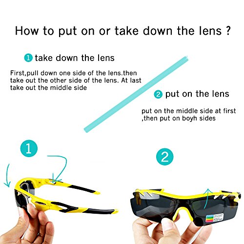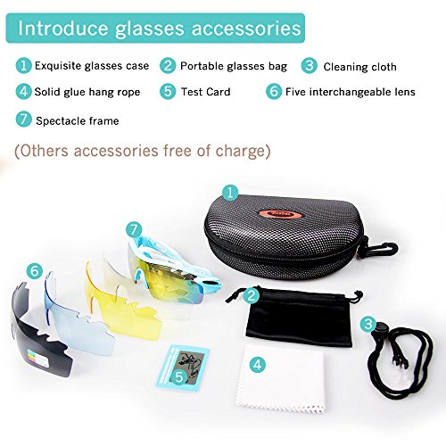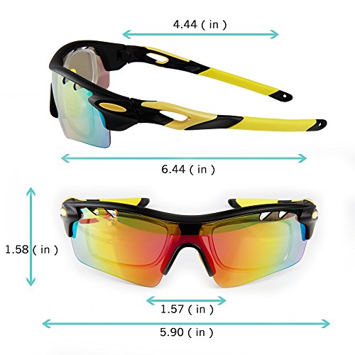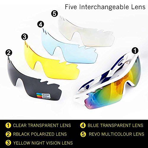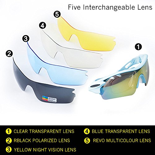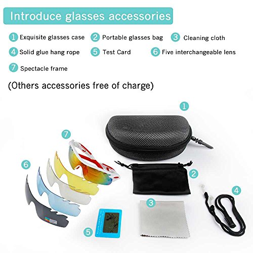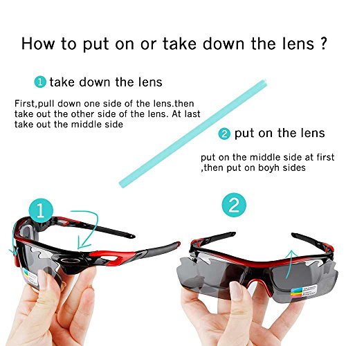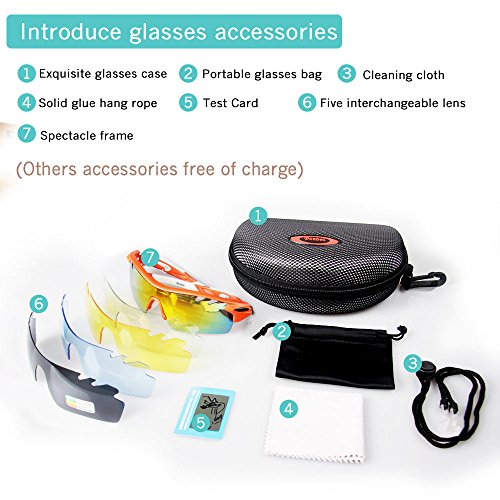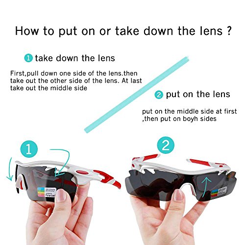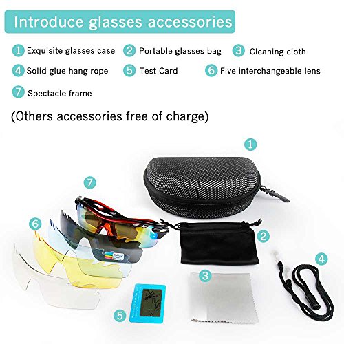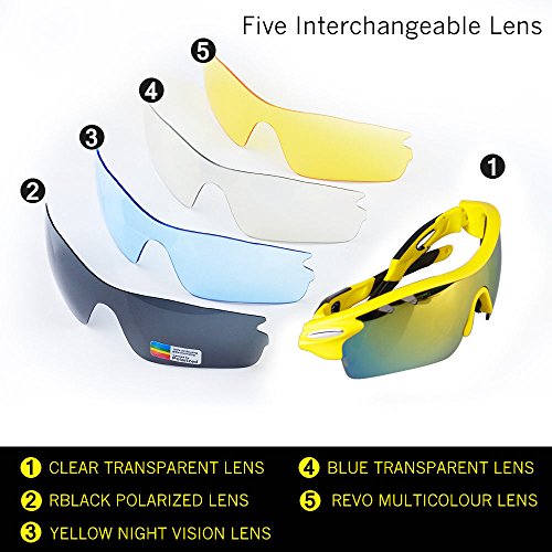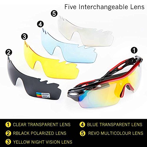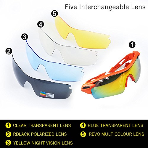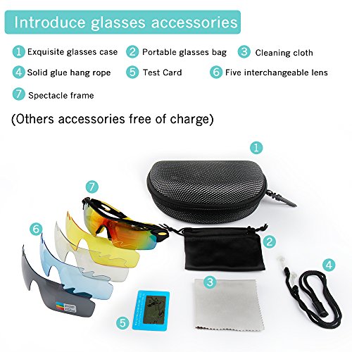 - Feature : Polarized lenses eliminate glare and reduce eye fatigue, 100% UV400 Protection Coating / Shatterproof Flexible Polycarbonate Frame, The adjustable nose support made of soft silicone, it can be changed so that can fit you nose well and make you feel more comfortable / 5 Shatterproof Lens:The Main Black lens is Polarized Lenses Against Strong Sunlight, the Other 4Lens are Colored Sunglasses for Different Environmental Condition / Lightweight design is ideal for usage by motorcycle and cycling bicycle, driving, running, fishing, racing, Skiing and climbing, Trekking or other outdoor activities enthusiasts. Allows for easy and convenient to carry and install / 30 Day Money Back Guarantee, Lifetime Breakage Warranty on Frame & Lens