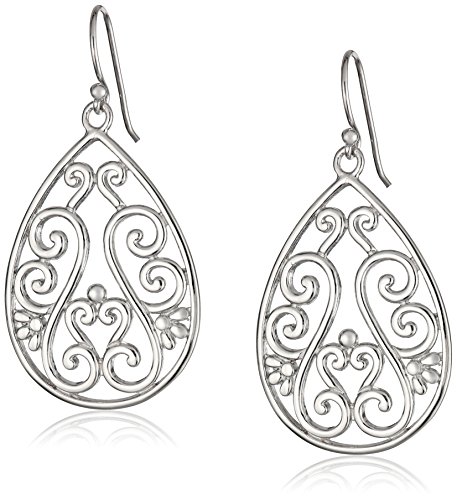 -. Feature : Sterling silver drop earrings featuring teardrop-shape pendants embellished with elaborate filigree designs / Fishhook backings / Imported