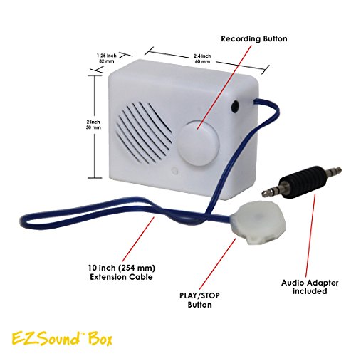 EZSound Box - 10 inch Extension Play Button for Stuffed Animals, Craft Projects, School Presentations, Hobbies, Personalized Items, Model Trains, etc - 200 seconds - Rerecordable thru Audio Port