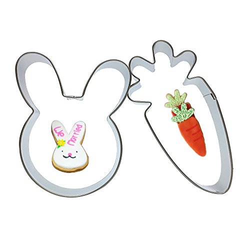 Stainless Steel Cookie Cutters Set Fondant Cutter Metal Cookie Molds (Lovely Rabbit Head and Carrot, Pack of 2)