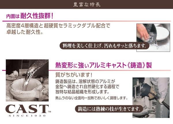 | 素材・材質 | 本体:アルミニウム合金 内面:テフロン(TM)プラチナプラス加工 外面:ミラー仕上げ 底面:サテン仕上げ ハンドル:天然木 |