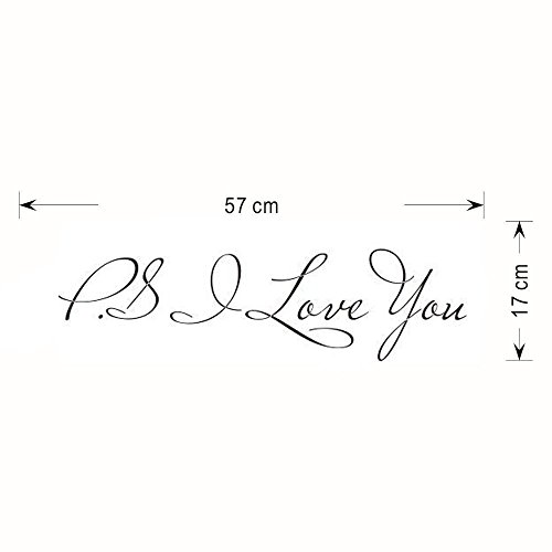 BIBITIME Sayings and Quotes P.S I Love YOU" Romantic Wall Sticker Home Decal for Couple Bedroom Vinyl Inspirational Art Mural,22.43" x 6.69"