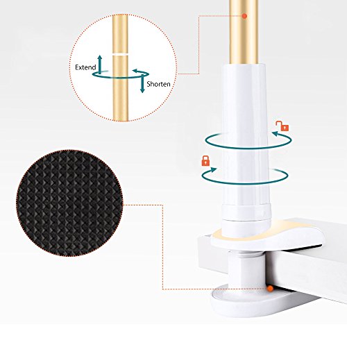 【Reinforced Bolt Clamp Base:】The bracket base clip accommodates the thicknesses of up to 75 mm, you can lock it tight on the table, desk, counter and bedside.