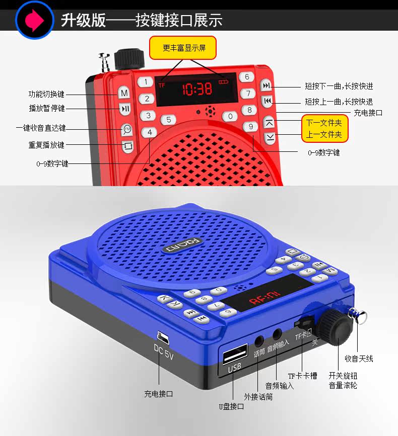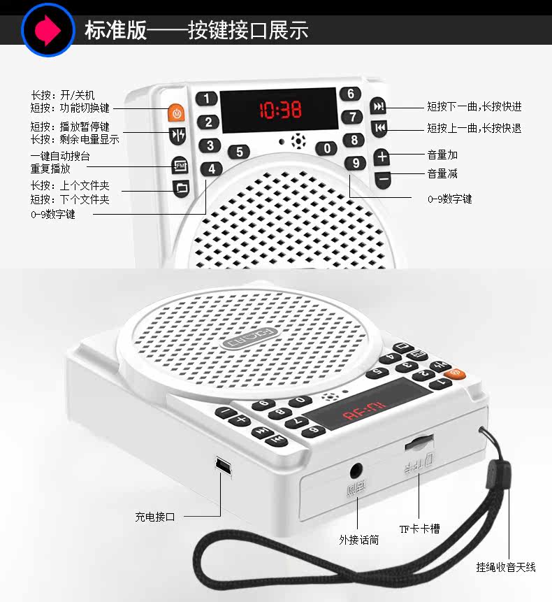 Tips: Standard without microphone, charger (with mobile phone USB charger), memory card and card reader