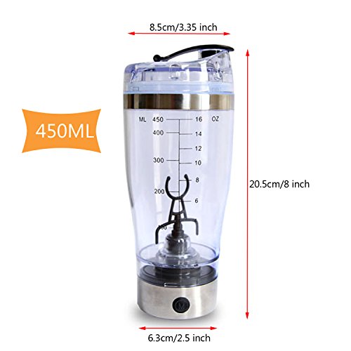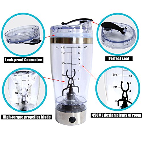 - Powerful Electric Protein Shaker Bottle:quickly mixes up drinks no clumping.Just adding the desired liquid, press the power button on the motor to create the vortex, add the powder and wait 30 seconds.It mix all your powder shakes.Works great with pre-workout, creatine, protein, collagen powder and any other powdery substance