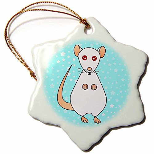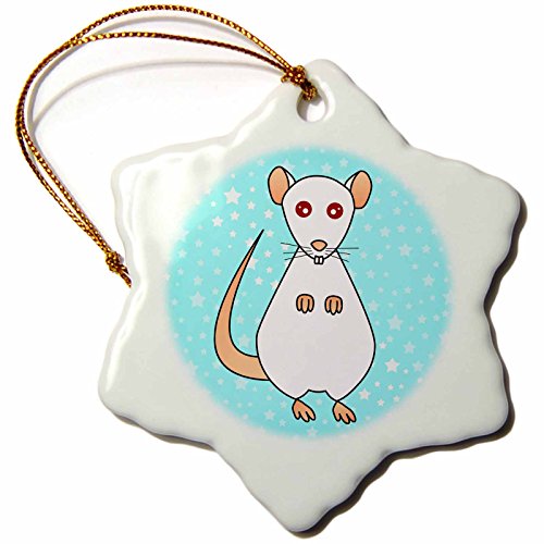 3dRose orn_10806_1 Cute White Red Eyes Rat Blue Star Background Porcelain Snowflake Ornament, 3-Inch