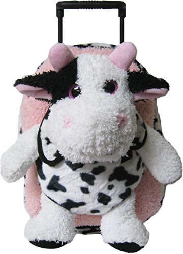 -. Title : Kreative Kids Pink Cow Rolling Backpack w/ Shiny Eyes, Removable Stuffie & Wheels