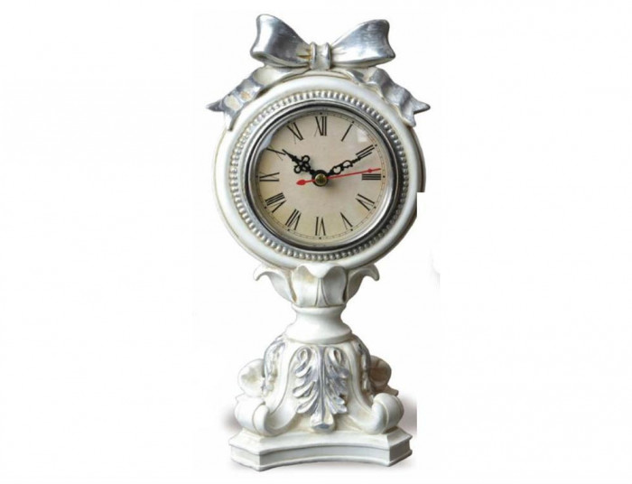 | 高級感のあるシルバーリボンで、エレガントなデザインに仕上げた置時計です。大切な方へのギフトとしても最適です。お部屋をおしゃれな雰囲気に包んだり、お店やセットのディスプレイにもおすすめです。 |